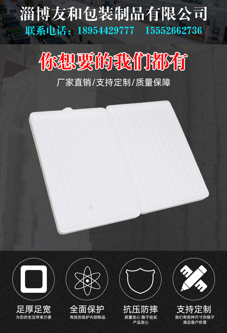 ????淄博友和包裝制品有限公司是專業(yè)的山東泡沫包裝箱加工廠家,本廠主要產(chǎn)品有:泡沫包裝箱,泡沫保鮮箱,水果蔬菜泡沫包裝箱,水果蔬菜泡沫保鮮箱,瓷磚泡沫包裝箱等,產(chǎn)品暢銷全國,深受用戶好評。泡沫包裝定做可以聯(lián)系我們網(wǎng)站 http://www.wlsaijn.com.cn/ 上電話,我們會第一時間跟您聯(lián)系。