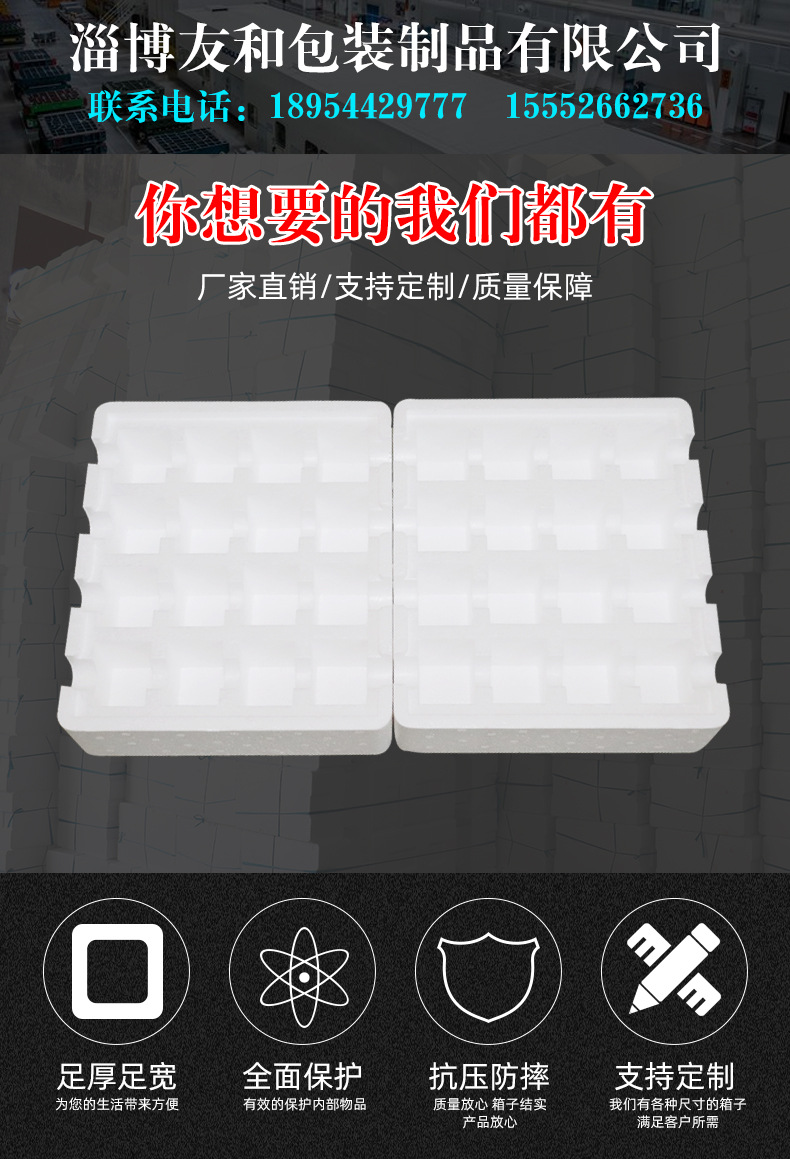 ????淄博友和包裝制品有限公司是專業(yè)的山東泡沫包裝箱加工廠家,本廠主要產(chǎn)品有:泡沫包裝箱,泡沫保鮮箱,水果蔬菜泡沫包裝箱,水果蔬菜泡沫保鮮箱,瓷磚泡沫包裝箱等,產(chǎn)品暢銷全國,深受用戶好評(píng)。泡沫包裝定做可以聯(lián)系我們網(wǎng)站 http://www.wlsaijn.com.cn/ 上電話,我們會(huì)第一時(shí)間跟您聯(lián)系。